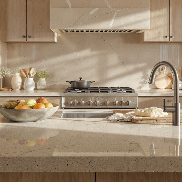 La cuisine représente le cœur battant d’un logement moderne. Un plan de travail en pierre naturelle y devient l’élément focal qui capte immédiatement l’attention. Le granit, le quartz naturel ou le marbre apportent une dimension haut de gamme tout en garantissant une résistance exceptionnelle aux tâches, rayures et chaleur.
